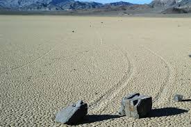 Estas peregrinações minerais confundem os cientistas há mais de cinco décadas. Ninguém nunca viu as pedras realmente se movendo, mas elas devem se mover, porque as rochas locais, e as trilhas que elas deixam atrás de si, mudam de posição ao longo do tempo.
