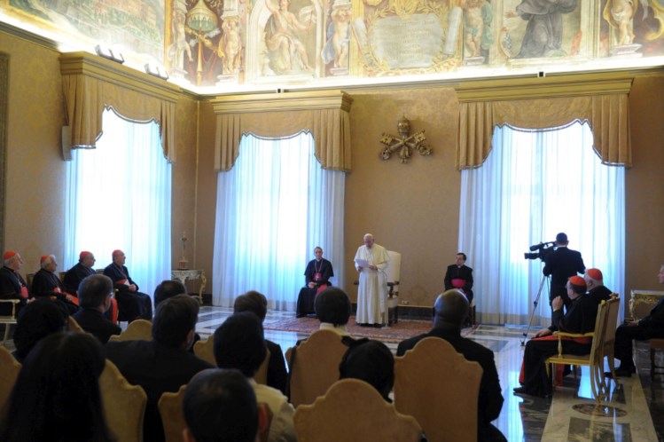Francisco criticou, ainda, o "falso modelo de sociedade, que corresponde à implementação de um ateísmo prático, em contradição com a palavra de Deus, segundo a qual o homem foi feito à Sua imagem e semelhança. "A dignidade de cada homem e mulher não pode ser suprimida nem submetida a um poder ou a uma ideologia", defendeu.